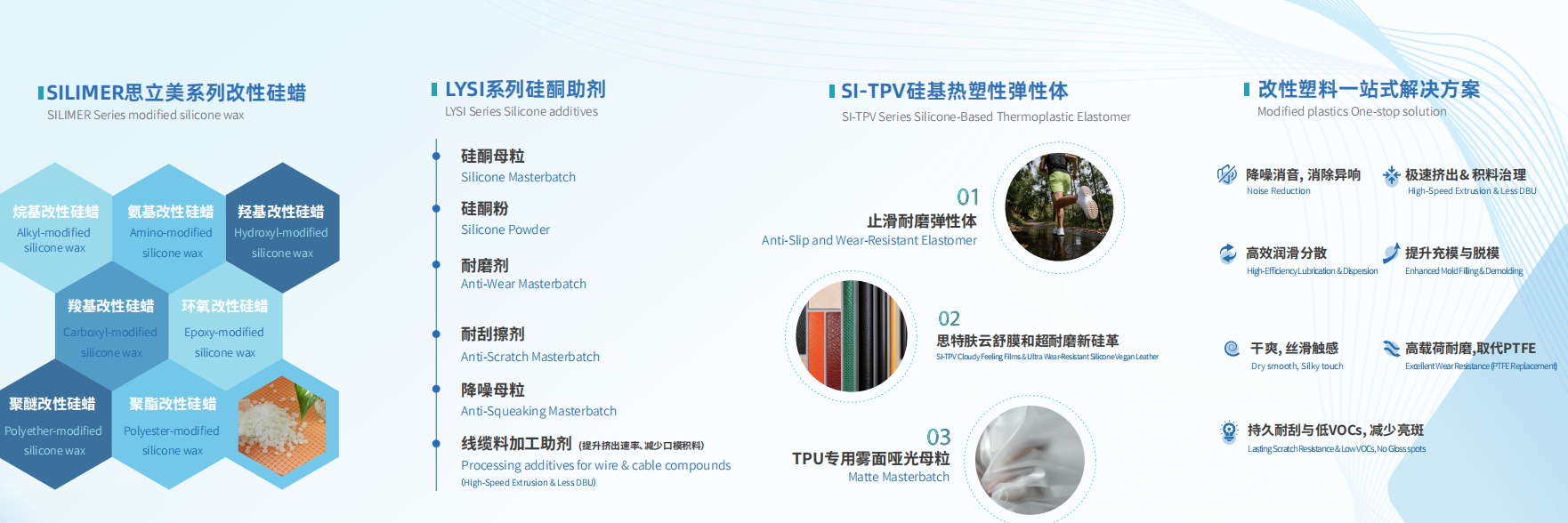 At Booth 6.2-B65, SILIKE will present a comprehensive portfolio of silicone-based and PFAS-Free solutions, including: