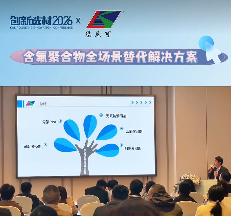 At the 2026 CIC Innovation Material Selection Conference, SILIKE’s R&D, Mr. Luo, introduced the topic: “Fluorine-Free Transformation in Modified Plastics: Full-Scene Substitution Solutions for Fluorinated Polymers.” He highlighted the following core Fluorine-Free solutions: